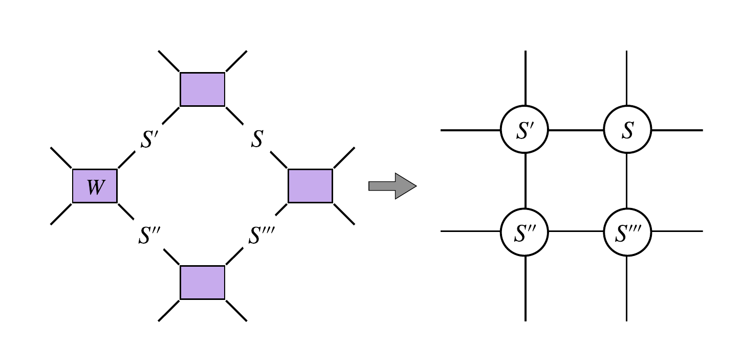 With this transformation it becomes an "ising" model assuming the contributions from contractions of far layers are ignorable.