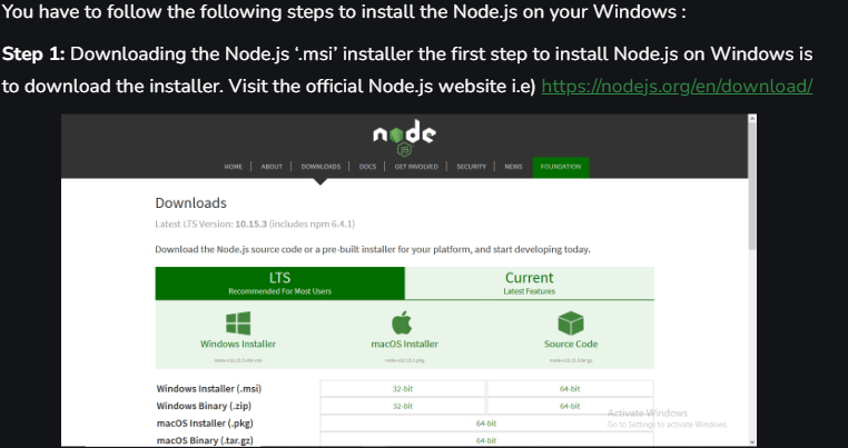 Node js installation