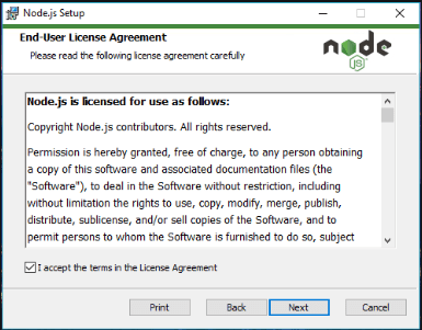 Download Node js file and start installation