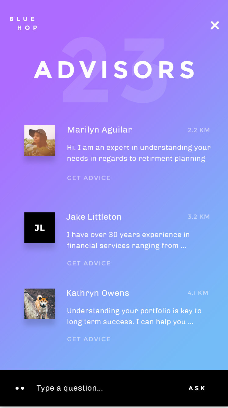 - BlueHOP is a portal to connect prospects directly to advisors and services