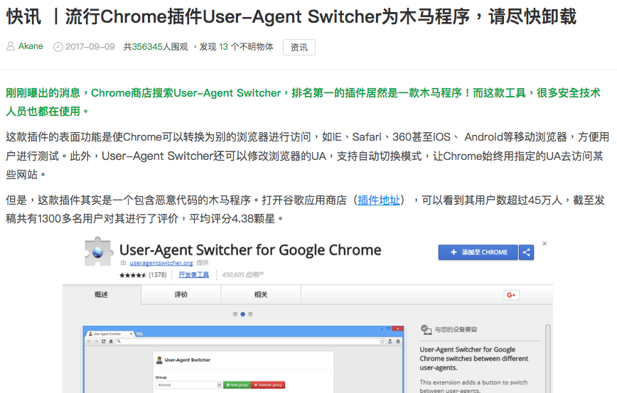 Google Chrome外掛套件User-Agent Switcher後門解析