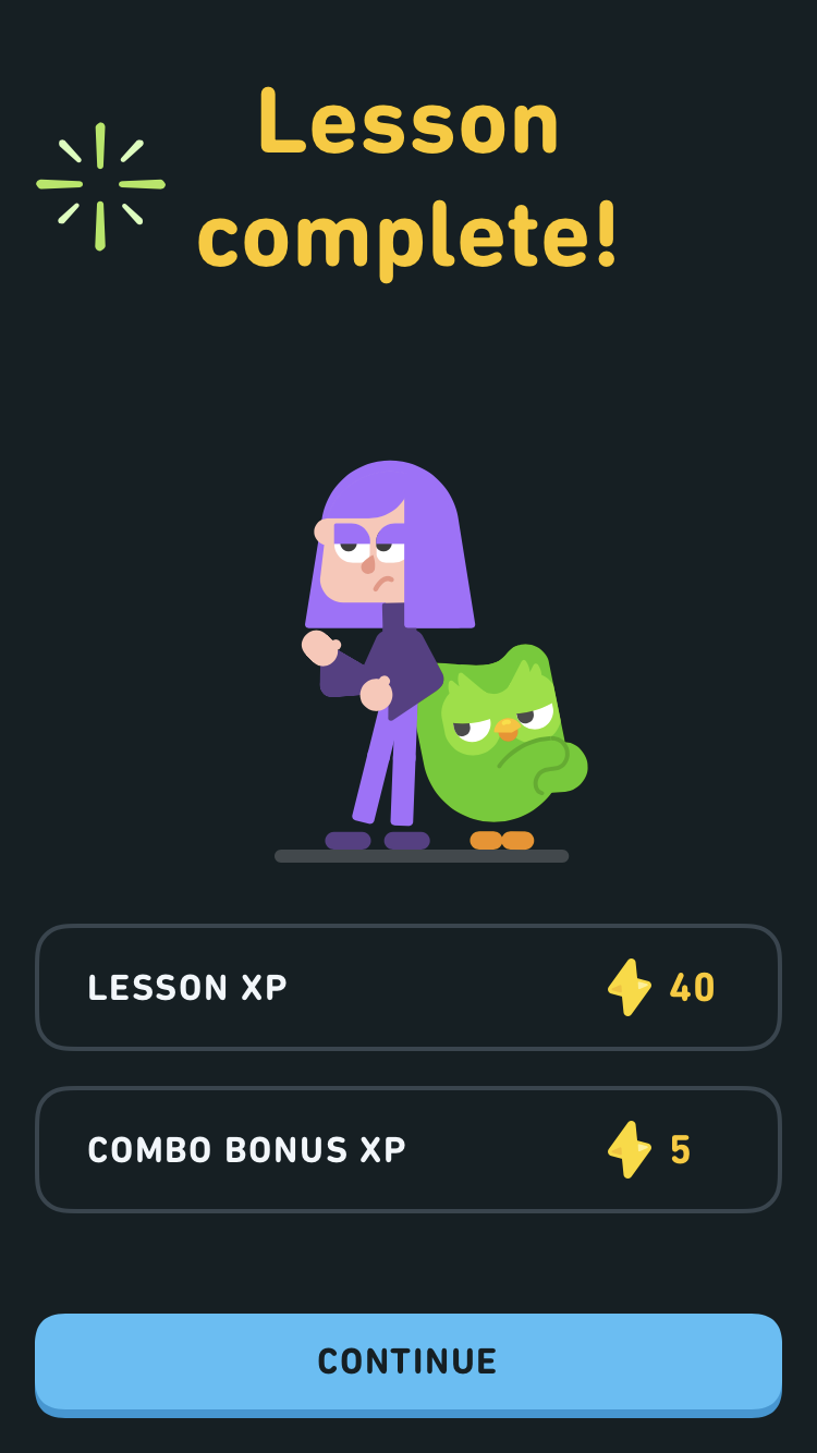 This makes the whole app experience feel light-hearted and fun. You aren't working to learn a language, you're playing a game that happens to teach you one! It's a popular app for good reason.