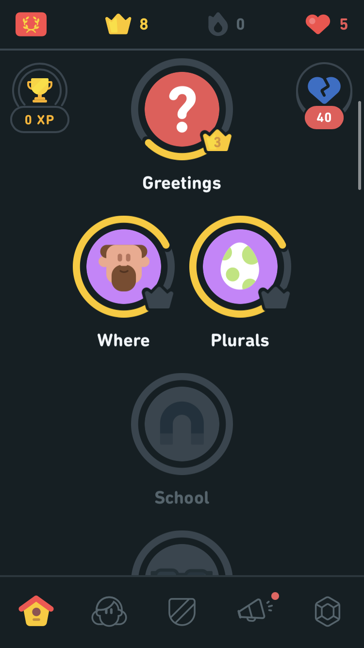 Beyond these stereotypical game elements, Duolingo also completely embraces a fantasy game aesthetic.