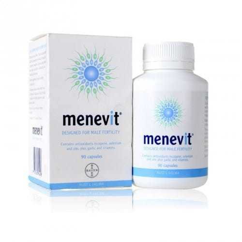 Menevit là thuốc có xuất xứ từ hãng Bayer- Úc, được điều chế từ D – Alpha – Tocophenol (Vitamin E), Garlic oil, Ascorbic Acid (Vitamin C), Selenium, Kẽm (Zinc Sulphate Monohydrate) và một số thành phần tá dược khác