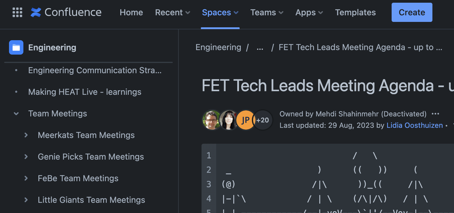 Also a guideline of what should be documented where (some things would belong on confluence and would be linked in our README.md files)