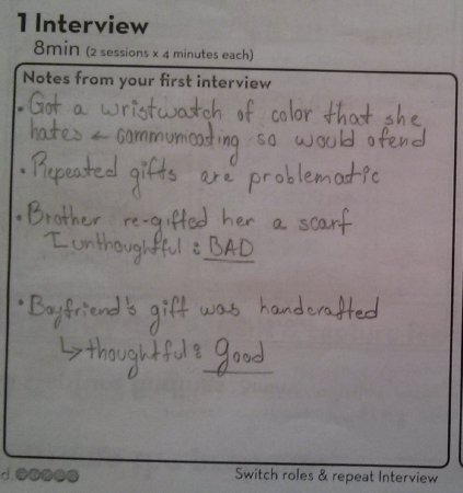 Stage 1A: Ask your partner (4 mins)