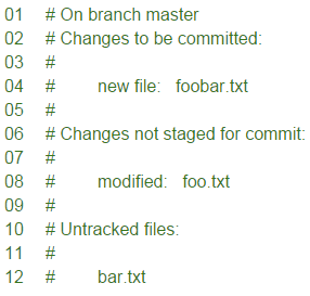 Para inspeccionar el escenario del proyecto se utiliza el siguiente comando: git status , el cual retorna un mensaje con los cambios realizados, archivos sin track, y cambios sin ser committed, como el siguiente ejemplo: