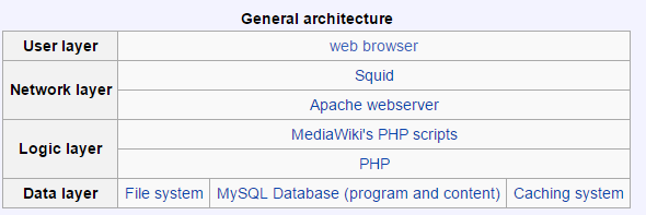 MediaWiki es una herramienta utilizada para propósitos muy diferentes. Dentro de los proyectos de Wikimedia, por ejemplo, se utiliza para crear y conservar una enciclopedia (Wikipedia), para alimentar una mediateca enorme (Wikimedia Commons) o para transcribir textos de referencia escaneados (Wikisource); etcétera. En otros contextos, MediaWiki se utiliza como un CMS corporativa, o como un repositorio de datos, a veces combinado con un marco semántico. Estos usos especializados que no estaban previstos para probablemente seguirán impulsando constantes ajustes a la estructura interna del software. Como tal, la arquitectura de MediaWiki está muy vivo, al igual que la inmensa comunidad de usuarios que soporta.