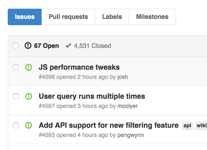 GitHub's integrated issue tracker keeps your team on top of bugs and focused on features. GitHub Issues are flexible, so your project's issues pages can be as simple or as complex as you need. Track progress with labels and milestones, and move issues forward with assignments.