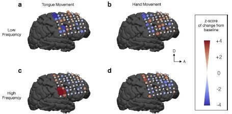 At high frequencies, results are "consistent with known organization of the human sensimotor cortex".