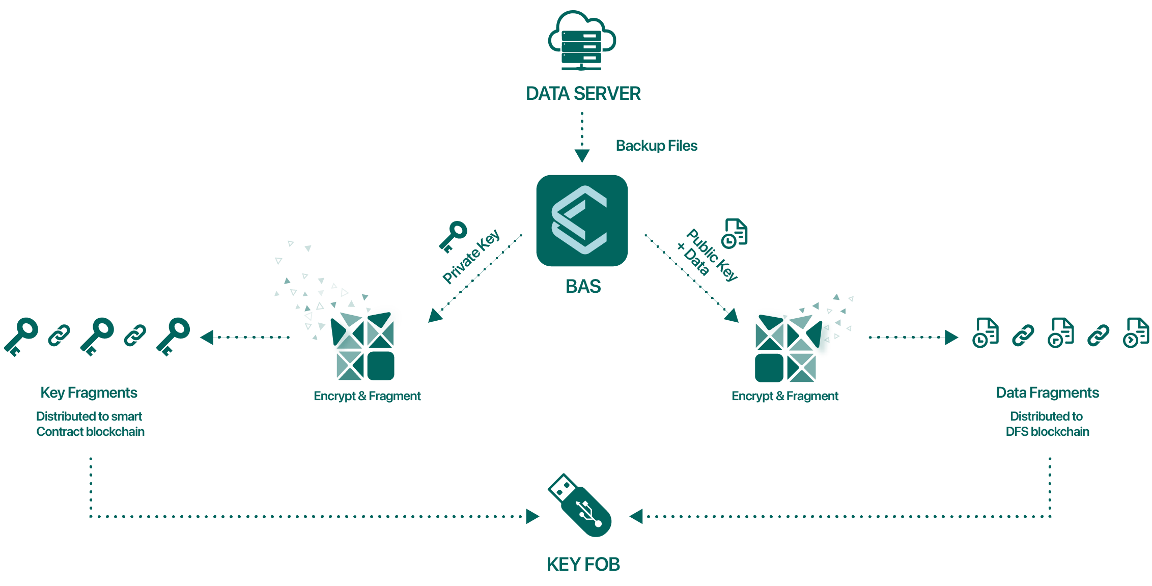 Only the smart contract contains the information to reconstitute your data