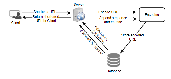 A successful insertion returns the shortened URL; otherwise, it returns an error code.