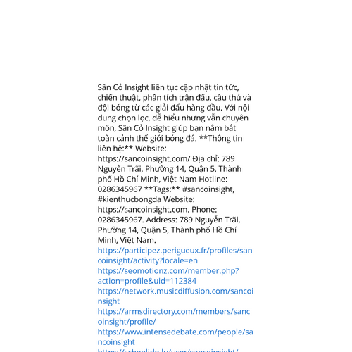 Website: https://sancoinsight.com. Sân Cỏ Insight liên tục cập nhật tin tức, chiến thuật, phân tích trận đấu, cầu thủ và đội bóng từ các giải đấu hàng đầu. Với nội dung chọn lọc, dễ hiểu nhưng vẫn chuyên môn, Sân Cỏ Insight giúp bạn nắm bắt toàn cảnh