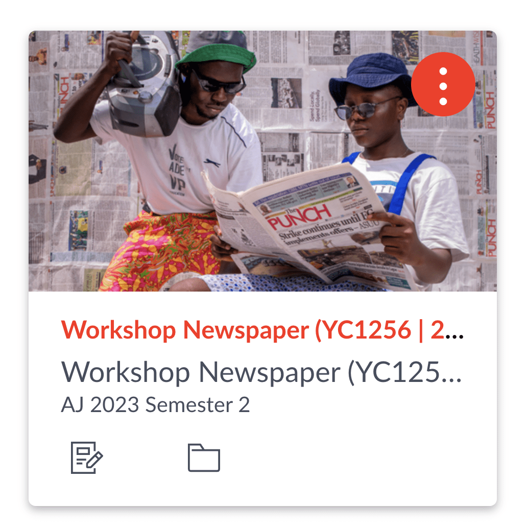 Workshop NEWSPAPER = 1 course= 1 score (3 credits) > Lieve Roegiers (text) > Sandra Busselot (layout) = 2 hours/week