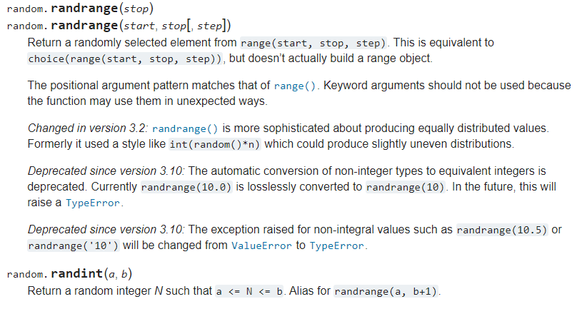 Ger ett heltal i motsvarande range (start, stop, step)