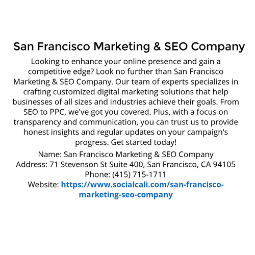 https://www.socialcali.com/san-francisco-marketing-seo-company Get ahead of the competition with San Francisco Marketing & SEO Company. Elevate your online presence and grow your business with us today!