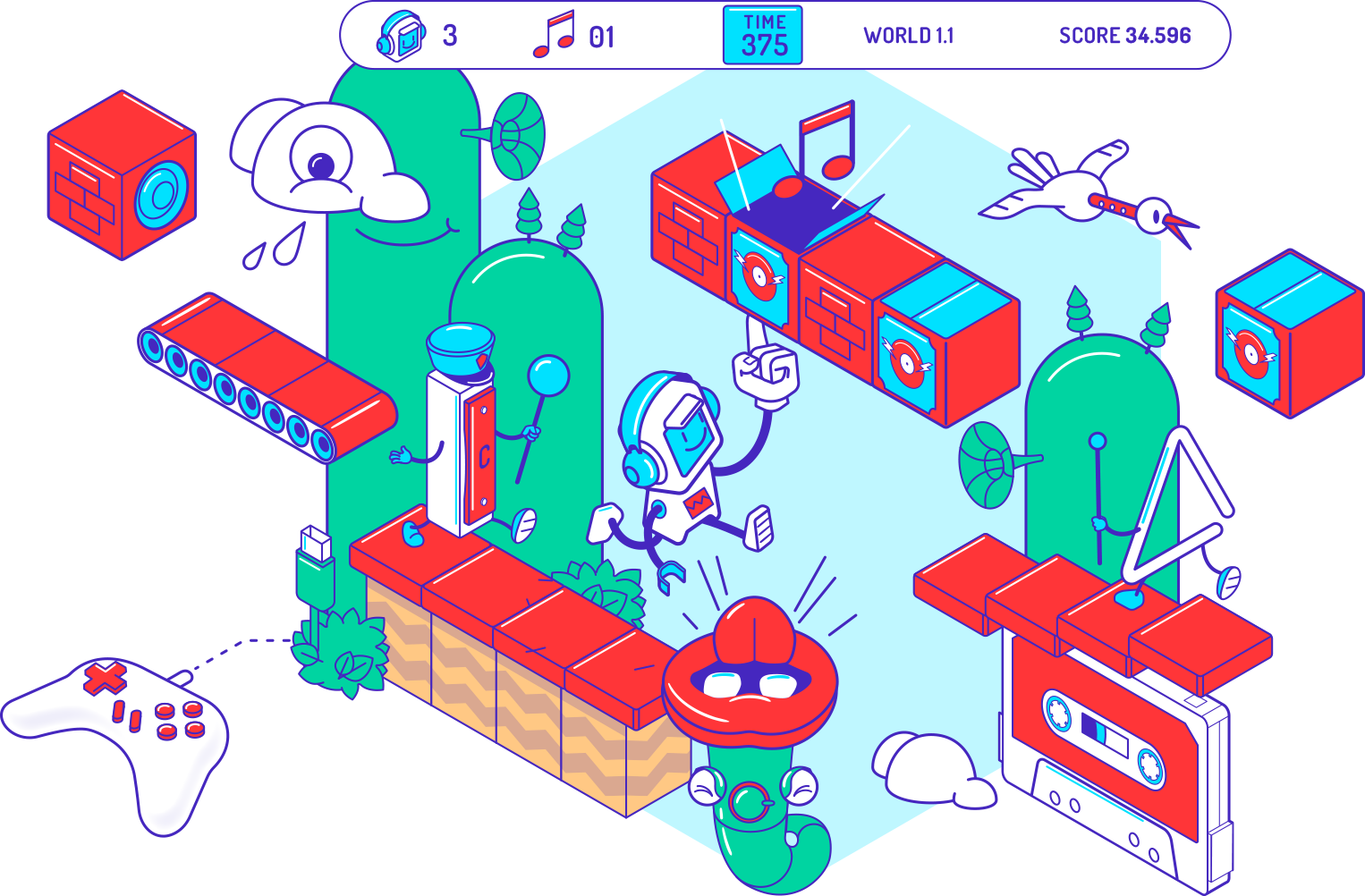 - →: Walk right → + B: Run right → + B + A: Jump higher