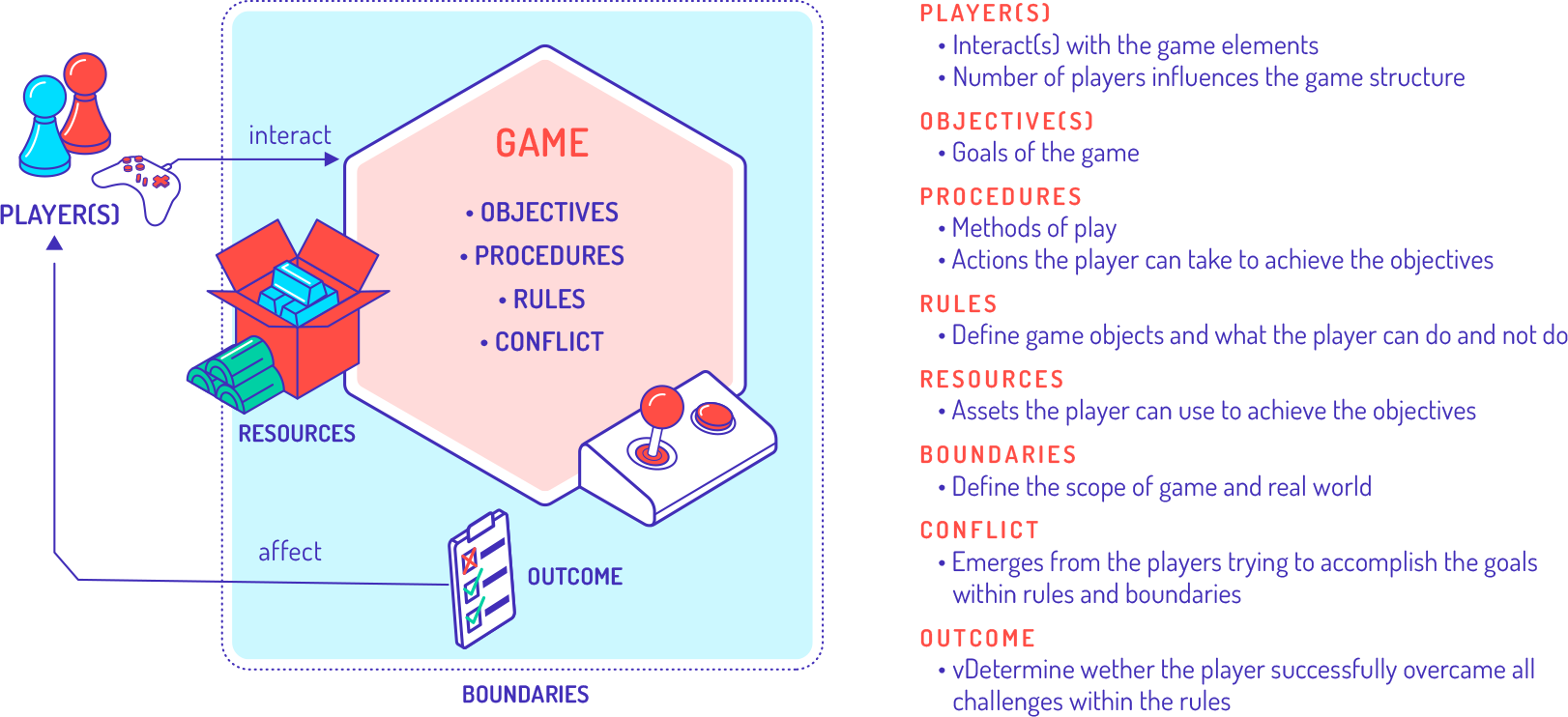 - Understanding how a game can be defined and which elements it consists of