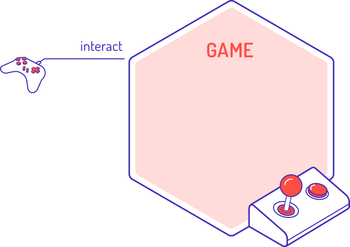 - Players interact with the system to experience the play of the game