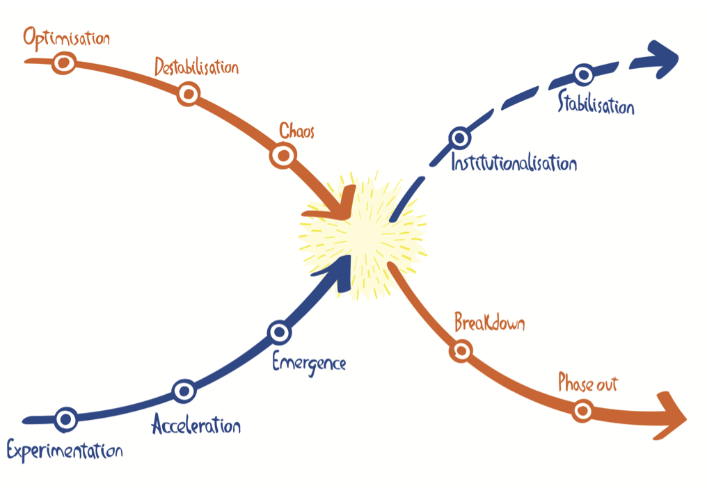 Six years ago, a motivated coalition of knowledge institutions and research funders embarked on an ambitious movement to fundamentally renew the system for recognising and rewarding academics. With one clear ambition: talent in academia is diverse and deserves broader recognition. This systemic change is motivated and contributes to a global transformation in the organisation of academic research that is still ongoing. I will use the Drift X-curve model, a tool for making sense of system transitions, to examine the development over the past years driven by the national programme and to anticipate possible future scenarios for the responsible research movement.