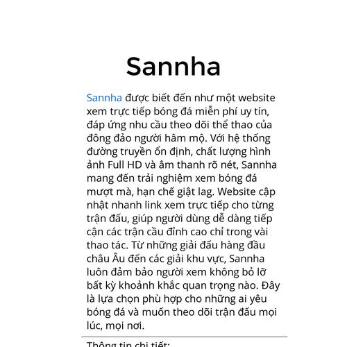 Sannha là nền tảng xem trực tiếp bóng đá miễn phí, cập nhật nhanh tỷ số, lịch thi đấu, highlight từ Ngoại hạng Anh, Champions League… được nhiều người hâm mộ Việt Nam lựa chọn theo dõi mỗi ngày. Website: https://sannha888.com/