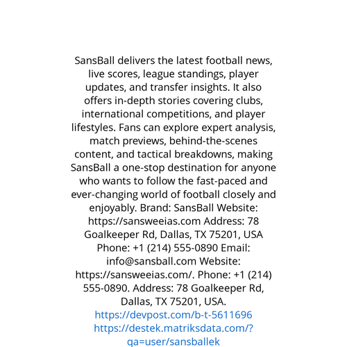Website: https://sansweeias.com/. SansBall delivers the latest football news, live scores, league standings, player updates, and transfer insights. It also offers in-depth stories covering clubs, international competitions, and player lifestyles. Fan