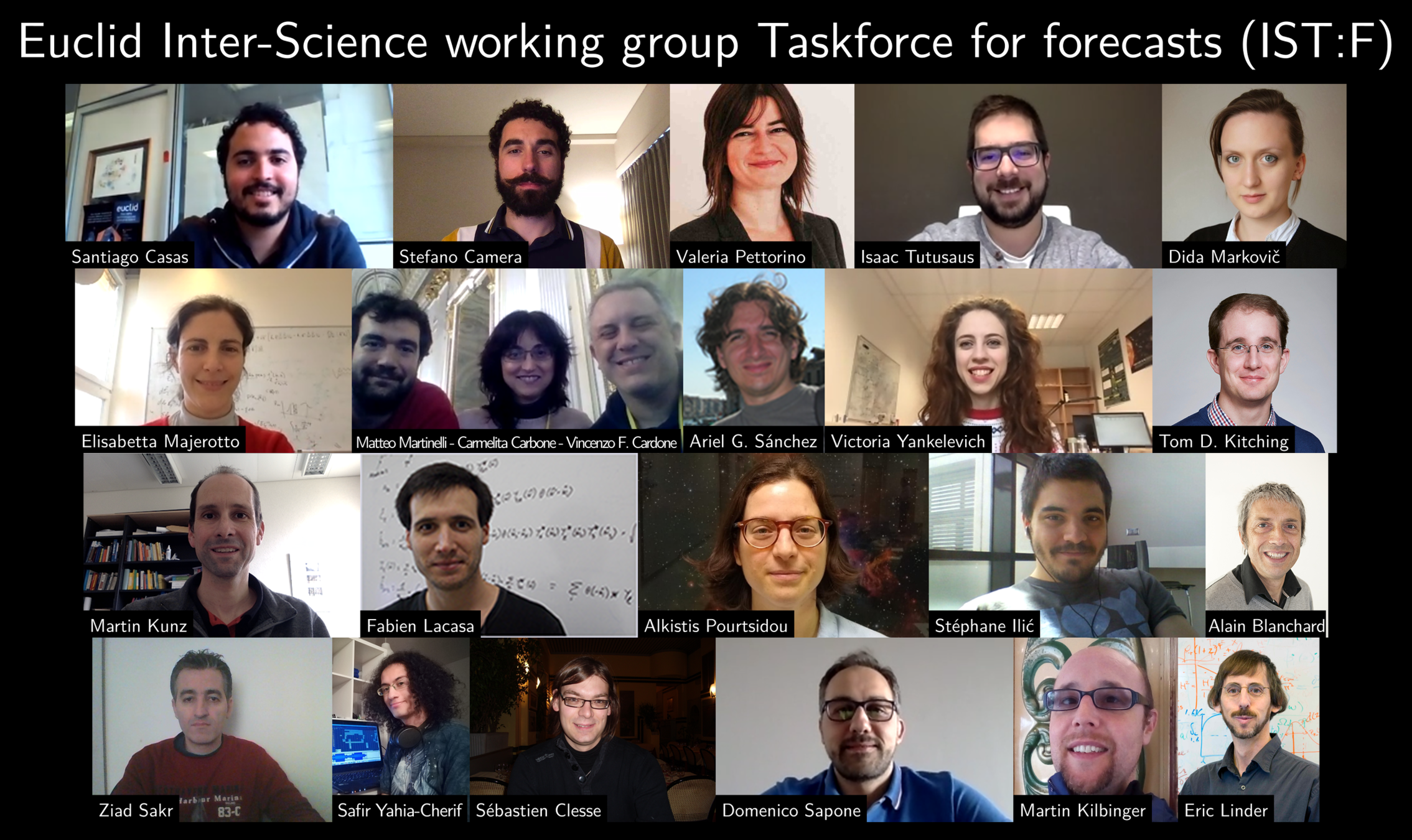 - Preparation of consistent (and alternative) pipelines for Euclid data release analysis, including cross-correlations with Clusters, Voids or other non-Gaussian observables and correlations with other surveys such as CMB, radio 21cm IM, SNIa and gravitational wave sirens.
