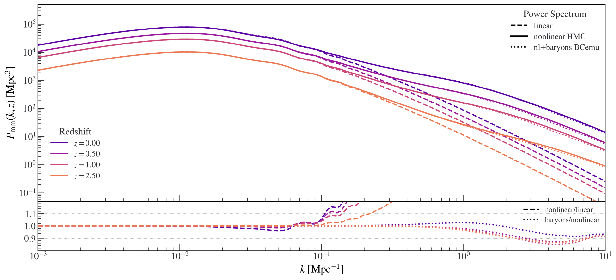 wavevector scale k in h/Mpc