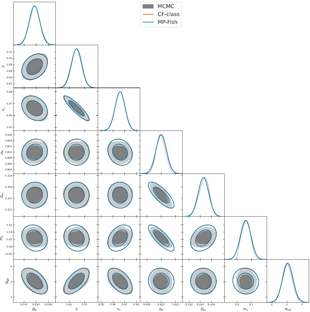 MontePython MCMC vs. CosmicFish, for the 3x2pt photo probe of Euclid with neutrino mass and N_eff. Plot by: Sefa Pamuk