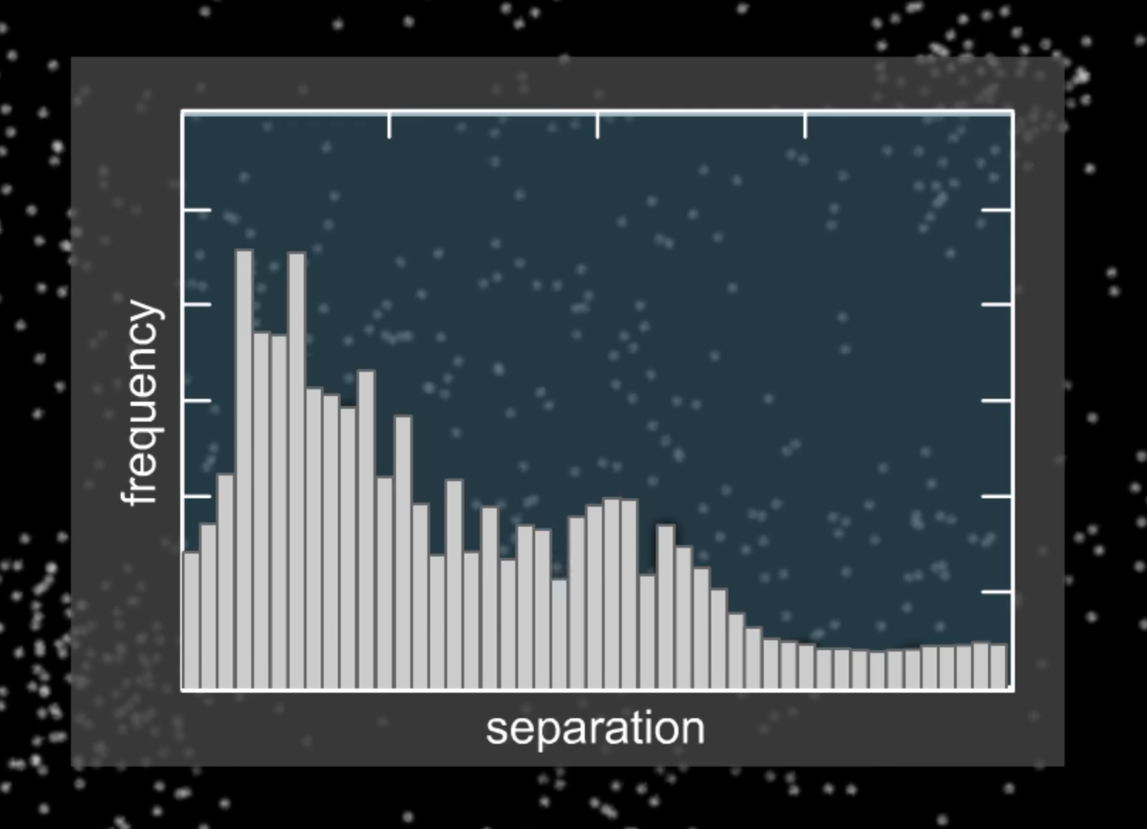 Expresa la probabilidad de encontrar una galaxia a una cierta distancia de la otra