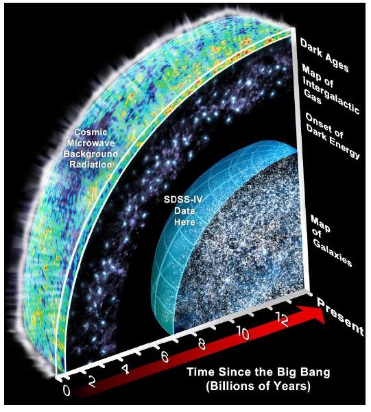 Confirmado con observaciones del fondo de luz microondas emitidas ~380.000 años después del Big Bang