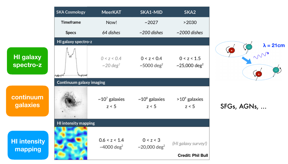 2. Intensity Mapping: Large scale correlations in HI brightness temperature -> very good redshift resolution,