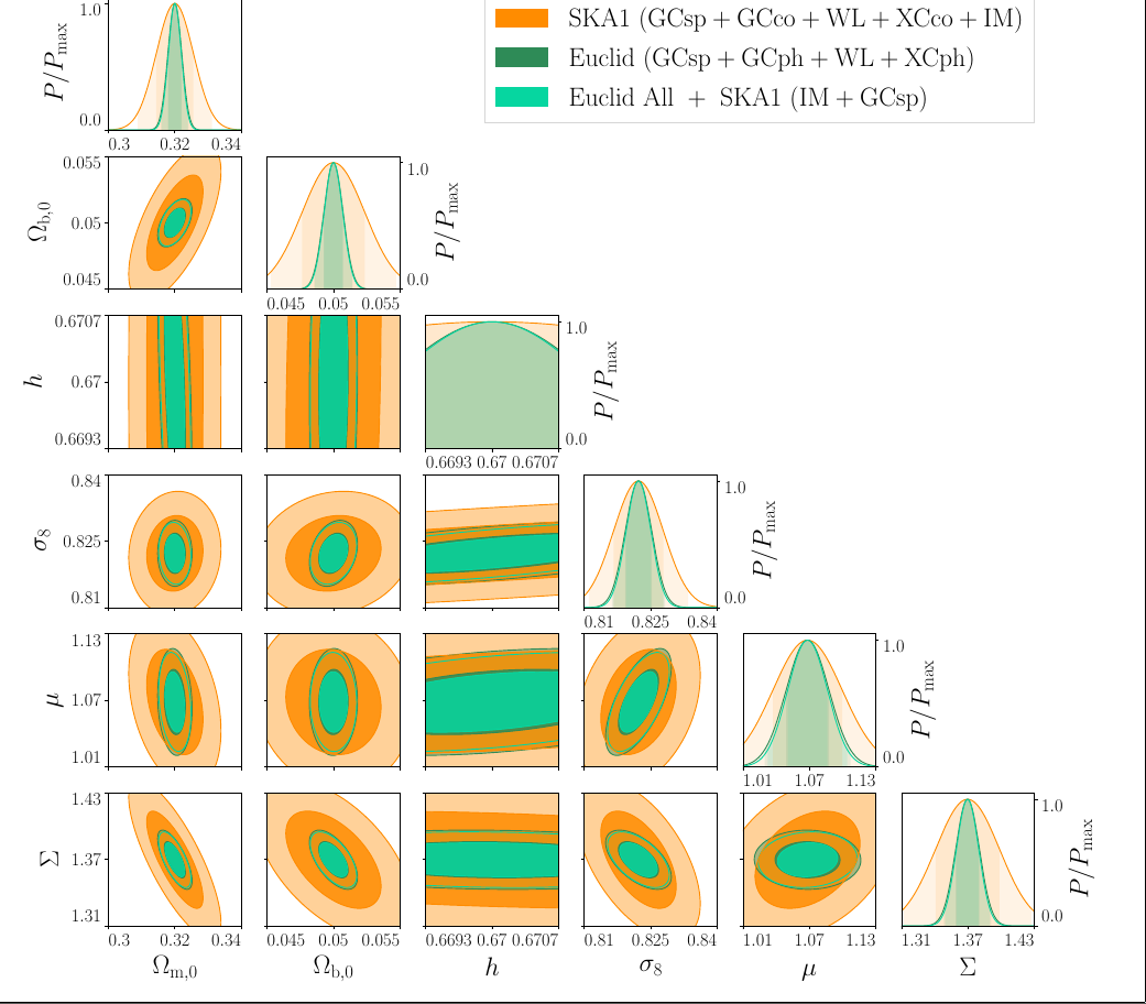 Unfortunately, the \(\mu\) constraints from Euclid alone dominate over the improvement that SKA1 "Pk-probes" add