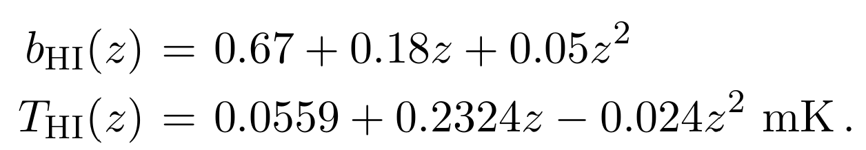 \( b_{\rm HI}(z) = 0.3(1+z) + 0.6 \)