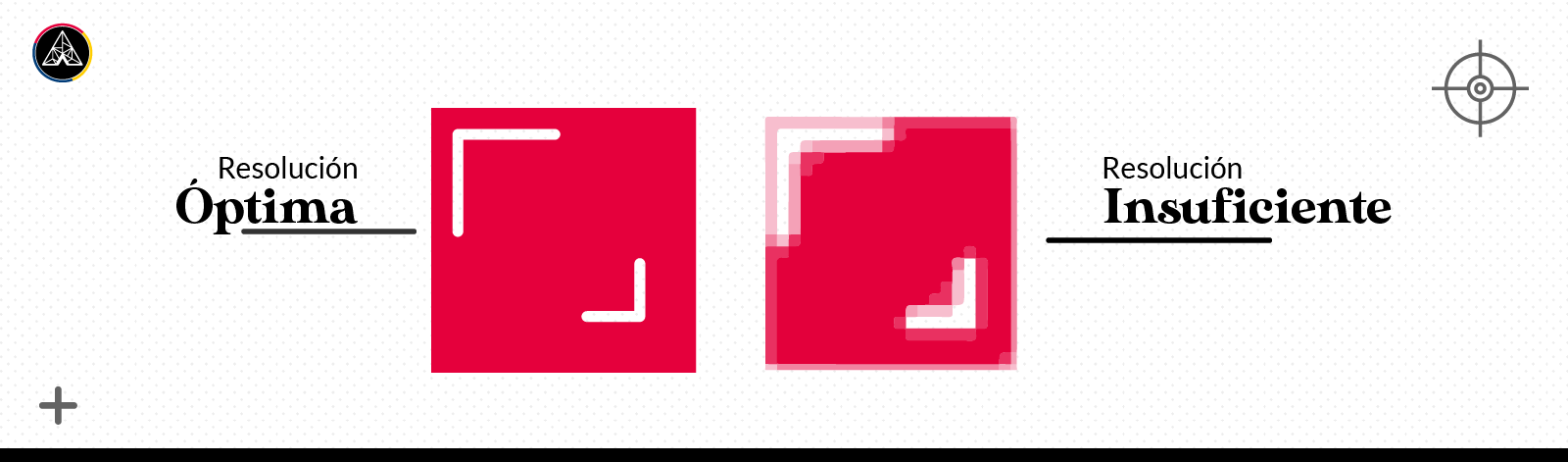 En el caso de pequeño formato, lo que implica que se van a ver de cerca, debe tener una resolución de 300 ppp, todo lo que sea inferior a eso nos va aproximado a pixelados, desenfoques y borrones.
