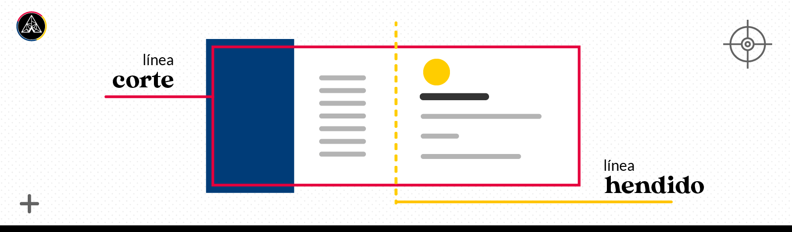 Las marcas de hendido son unas líneas discontinuas con las que indicamos por dónde va a doblar nuestro documento, ya sea un tríptico o una caja, es importante que esté bien calculadas para no llevarnos sorpresas con las perdidas de espacio en el recorrido.