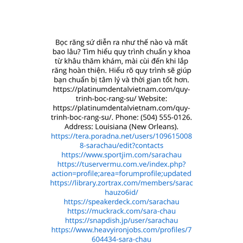 Website: https://platinumdentalvietnam.com/quy-trinh-boc-rang-su/. Bọc răng sứ diễn ra như thế nào và mất bao lâu? Tìm hiểu quy trình chuẩn y khoa từ khâu thăm khám, mài cùi đến khi lắp răng hoàn thiện. Hiểu rõ quy trình sẽ giúp bạn chuẩn bị tâm lý v