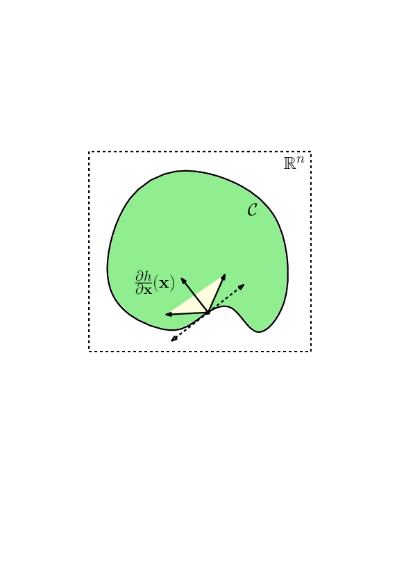 \(\mathcal C = \{\mathbf x \mid h(\mathbf x) \geq 0\}\)