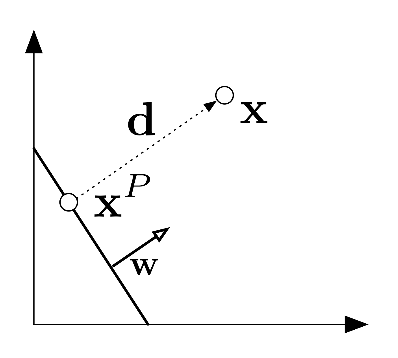 \(\mathbf{w}^\top\mathbf{x}^P + b = 0\)