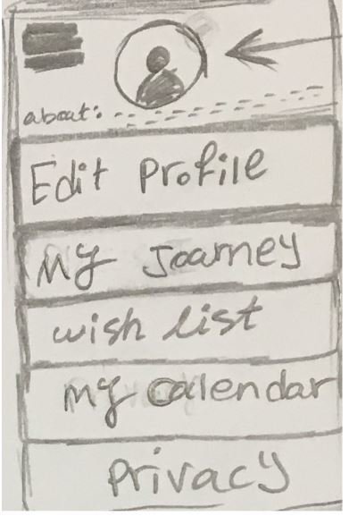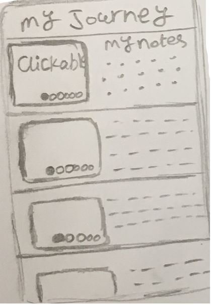 My Journey: This page is for saving the memory of the places that the user experience, so for the next trip she/he can decide if they want to go to that place again or not and why.on the sketch I put the note part plus pictures. on the wire-frame, I put just one picture because it is on the iPhone and it won't be big enough to have slides of photos. I also decided to put emojis on it as the overall impression, so they I can understand if it was good or bad without reading the text.