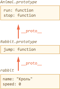 Объект, на который указывает ссылка __proto__, называется «прототипом». В данном случае получилось, что animal является прототипом для rabbit.
