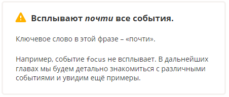 - click – происходит, когда кликнули на элемент левой кнопкой мыши