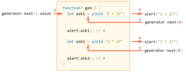 console.log(generator.next(1000)); // {value: 1, done: false}function* generateSequence() {