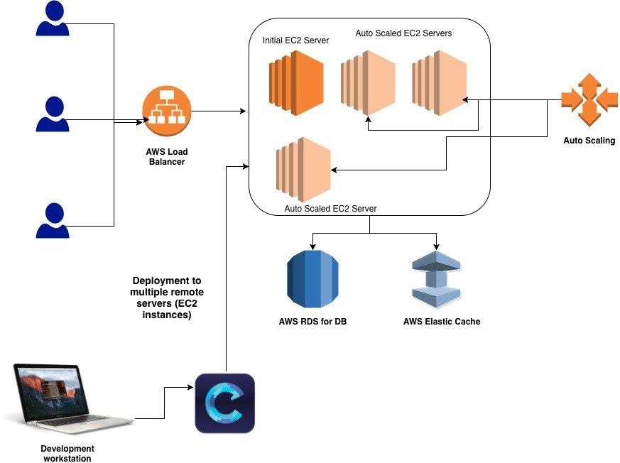 Note: Your EC2 servers' SSH key must be added to your Github, Bitbucket or Gitlab account. And your deployment machine's SSH key must be added in all of your EC2 instances' authorized_keys file.