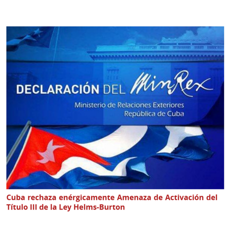 Cuba rechaza enérgicamente amenaza de activación del Título III de la Ley Helms-Burton