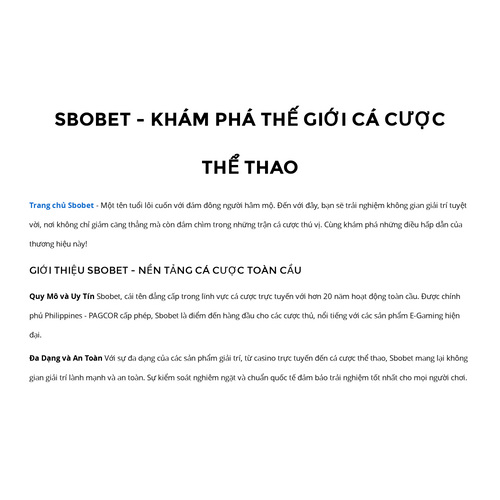Sbobet là trang web cá cược trực tuyến với kho game giải trí hấp dẫn cùng vô vàn khuyến mại mỗi ngày, chắc chắn không làm anh em thất vọng. Tham gia tại đây: