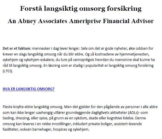 Forstå langsiktig omsorg forsikring An Abney Associates Ameriprise Financial Advisor