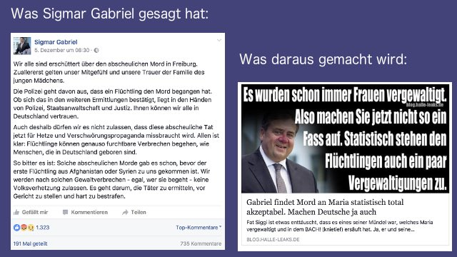 - Denkt an die vielen falschen Meldungen in den ersten Stunden nach Breivik, Nizza, München ...