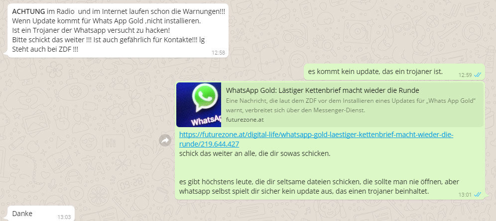- Teilt keinen Mist und nur Dinge, die ihr gelesen und überprüft habt