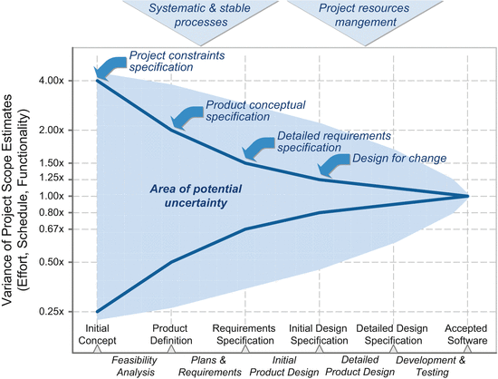 "In software development, it tends to be among the less iterative and flexible approaches, as progress flows in largely one direction ("downwards" like a waterfall) through the phases of conception, initiation, analysis, design, construction, testing, deployment and maintenance. [...] When first adopted for software development, there were no recognised alternatives for knowledge-based creative work."